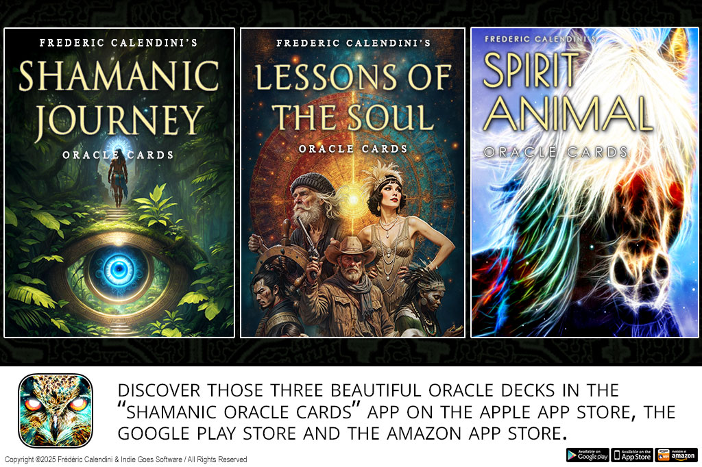 My three oracles, “Spirit Animal”, “Shamanic Journey” and the brand-new “Lessons of the Soul” are now available in the “Shamanic Oracle Cards” app!